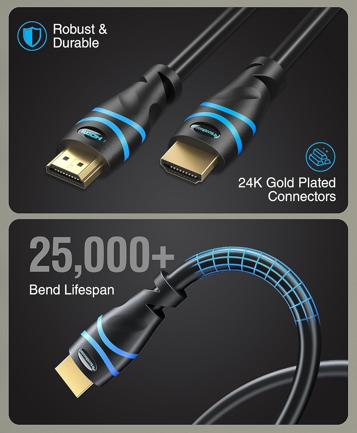 • [Premium Cable] – High-Speed HDMI Cables. Made with a PVC Jacket, this cable protects against fraying and damage, making it perfect for everyday use.