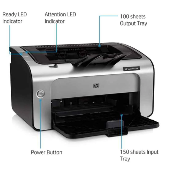 This HP P1108 LaserJet Pro Printer is perfect for small businesses and home offices. It prints at speeds up to 18 pages per minute, and has a 250-sheet input tray. The HP P1108 LaserJet Pro Printer is an all-in-one monochrome printer that is small and lightweight, making it perfect for use in a home or small office. It has a frequency of 60 Hz and dimensions of 349x238x196 mm without its stand. The printer can handle media with a weight of 60 to 163 g/m� and can produce output at a speed of up to 16 ppm.